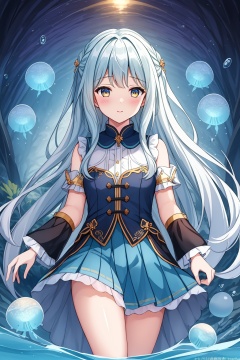 best quality,Amazing,Beautiful golden eyes,finely detail,Depth of field,extremely detailed CG unity 8k wallpaper,(1 girl :1.5),Deep sea background,jellyfish,masterpiece,fluttered detailed splashs, beautiful detailed water,cosmic eyes,Shock sensation,(realistic :0.5),octopus,original,