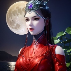 standing, dress, chinese clothes, flower,full_moon,moon,night,lily_pad,lotus,moonlight,nipples,water,night_sky,lily_\(flower\),sky,partially_submerged,1girl, solo, black hair, hair ornament, long hair, brown eyes, realistic, nail polish,photo_\(medium\),(breasts, medium_breasts, cleavage),makeup,(8k, RAW photo, best quality, masterpiece:1.2),(realistic, photorealistic:1.3),ultra-detailed,extremely detailed cg 8k wallpaper,(crystalstexture skin:1.2),extremely delicate and beautiful,