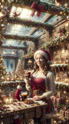 <lora:ChristmasDecorativeStyle:1>ChristmasDecorativeStyle portrait, solo, upper body, looking at viewer, detailed background, detailed face, (<lora:CulturePunkBundle-000007:0.5>, fairytaleai, fairytale theme:1.1) barkeep, simple Maroon clothes, apron, cozy rustic pub interior in background, worn out wooden beams, mold, clutter, counter, beverage, sign, jovial fantasy atmosphere,, (Masterpiece:1.3) (best quality:1.2) (high quality:1.1)