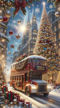 <lora:ChristmasDecorativeStyle:1>ChristmasDecorativeStyle a red double-decker bus passing in front of a grand museum, (Masterpiece:1.3) (best quality:1.2) (high quality:1.1)
