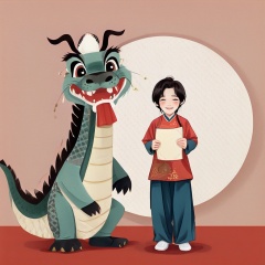 gufengsSolo, masterpiece,best quality,chinese new year,1 boy,child,solo,dragon,chinese dragon,looking at viewer,simple background,black hair,red background,full body,chinese clothes,paper lantern,<lora:gufengstyleSDXL-000016:1>