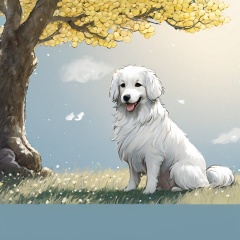 gufengstyle,masterpiece, Puppy, Young and young, Lovely, In the middle of the picture, Mid-range, Outdoor, Light blue sky, Clouds, Garden, White chrysanthemum, Big tree, Collar, Furry, Twelve signs of the Chinese zodiac, Corky Dog, HDR, Hairy pets, textured skin, super detail, best quality<lora:gufengstyleSDXL-000016:1>