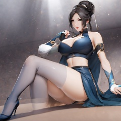 gufengstyle,masterpiece,best quality,ultra-detailed,Epic CG masterpiece,hdr,dtm,full ha,8K,ultra detailed graphic tension,dynamic poses,stunning colors,3D rendering,surrealism,cinematic lighting effects,realism,00 renderer,super realistic,full - body photos,super vista,super wide Angle,HD,(Blue smoke enveloped the body:1.3),Long blue cheongsam,1girl,solo,chun-li,dynamic posture,spike bracelet,fighting stance,(full body:1.5),(long legs:1.4),(Black transparent pantyhose:1.3),(Milky skin:1.6),(shiny skin:1.4),blurry,jewelry,blurry_background,bracelet,double_bun,chinese_clothes,solo,earrings,midriff,depth_of_field,breasts,navel,looking_at_viewer,short_sleeves,medium_breasts,<lora:gufengstyleSDXL-000016:1>