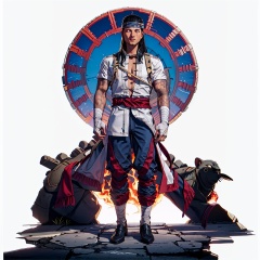 (masterpiece:1.3),(the best quality:1.2),(super fine illustrations:1.2),(Masterpiece),high quality,high detail,(white background:1.2),looking at viewer,(SOLO:1.4),outline,simple background,<lora:刘康-真人快打1:0.8>, arm wrap,black hair,chinese clothes,muscular,ankle wrap,white shirt,bandaged leg,tattoo,armor,choker,logo,vest,jacket,earrings,manly,pants,necklace,belt,jewelry,wrist wrap,fire,flame,bandaged hand,bandaged arm,