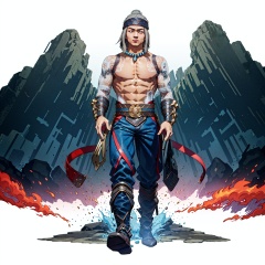 (masterpiece:1.3),(the best quality:1.2),(super fine illustrations:1.2),(Masterpiece),high quality,high detail,(white background:1.2),looking at viewer,(SOLO:1.4),outline,simple background,<lora:刘康-真人快打11:0.8>, jewelry,1boy,necklace,tattoo,fire,flame,muscular,headband,long hair,pants,belt,earrings,manly,bead necklace,pearl necklace,back tattoo,white hair,topless male,pectorals,stomach tattoo,shoulder tattoo,full-body tattoo,bare pectorals,arm tattoo,