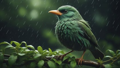 stylized by Daria Petrilli, Raw digital photo, 3D Rendering, Bird, it is Verdant, concept art, Stormy weather, Dark Academia, Light and shadow plays, film grain, Nikon d3300, 80mm, glitter texture, most beautiful artwork in the world, highly detailed, extremely content happy smile