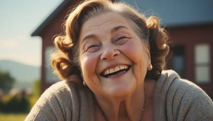 Cinematic still, studio, 99 y.o. portly Girl, Clear skies, soft focus, Cozy, decal art, Beautifully Lit, extremely content happy smile