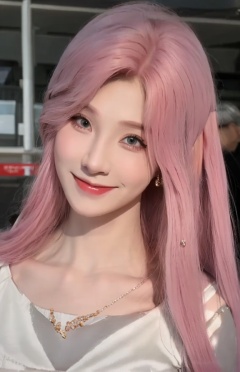 (Well constructed), HDR,8K, Real person, High detail, high quality, masterpiece,1 girl, High detail, super realistic 8K, solo,1 girl, flowing hair, dynamic pose, looking_at_viewer, Perfect body, jujingyi,1 girl, solo, jewelry, Long hair, Earrings, bag, handbag, smile,Pale pink hair