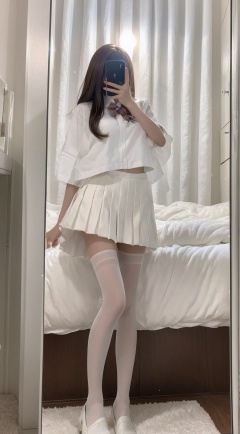 Best quality, 1girl, xtt's bodyA photo of oneself taken with a phone in front of a mirror ,full body, Wearing pure white shirt outside, Wearing black Pleated skirt, wearing pantyhose ,standing, Mobile selfie perspective, shapely body,midnight, xtt