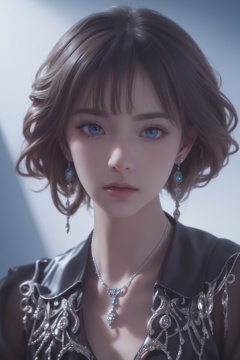 1girl,earrings,short hair,jewerly,blue eyes,, (((masterpiece,best quality))),Beautiful body, rhythmic body,Fantastic, imaginative, emotional, emotional rendering, brightly colored,ultra high res, Dynamic curves, active visuals, emotional colors, artistic sense, artistic colors, emotional colors, visual guidance,illustration,CG ,unity ,wallpaper, Amazing, an extremely delicate and beautiful, sharp focus,aerial perspective background,((good structure)),((Good composition)), ((clear, original,beautiful)), (clear details, clear light,clear structure),(high res raw,4K,8k),official art,,