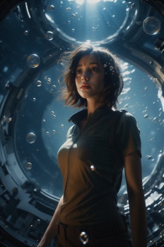 A girl with short hair,shenkong, Flowing light, bubbles,light particles,<lora:shenkong-000008:0.7>,Earth