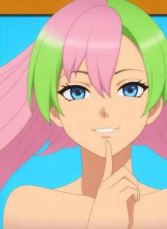 (pastel \(medium\):2.0), anime, traditional media, 1girl, mature female, portrait, multicolored hair, hand on face, loving aura