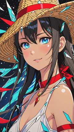 1girl, ****, (white camisole dress, straw hat, red sash belt:1.5), (cute face, sweet, smile, bare face, big eyes, open mouth:1.4), face closeup, black glitched hair, straight hair, long hair, cowboy shot, (dynamic pause, dynamic angle, walk on sandy beach, blue sky, white cloud, blue sea:1.3), japanese, japanese idol succubus, black eyes, (best quality, ultra high res, Realistic, RAW photo, portrait photography, photorealistic, detailed skin, fair skin, beautiful detailed eyes), neon lit broken glass in shape of woman, galactic canvas shattered hopes and dreams, crystalline breakage, cracks in the fabric of space, crystalline eyes, strokes of art, sharp edges and lines, artistic, neon colors, colorful, sharp, inter-dimensional cracks, limitless faults in the data, curved cracks, fragmented, breaking off, pieces of nature, fragments of destruction, fragments of dreams, story told in art, ultra detailed, intricate, masterpiece, best quality, detailed, highest quality, highest details, highres, vortex dream, cosmic color splash artwork, (opal chatoyance cloud background:1.2), trendy, wins awards, ultra HD, Panavision Millennium DXL2 8k, large format, 5K Super 35, true 4K anamorphic, realistic photo