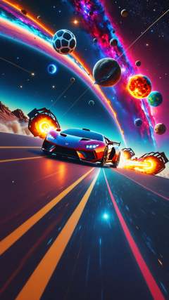 (masterpiece, best quality), high resolution, (8k resolution), (ultra detailed), The picture shows a car trail suspended in the starry sky, Two racing cars racing towards the camera, Super sports car, Plasma engine, Colorful planets and nebulae in the background, hyper realistic, more details, low saturation, realism, Phototexture