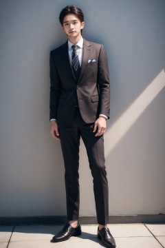 (1man:1.5),(male:1.5),(full body:1.2),(Collared shirt and blazer and suit trousers:1.4),<lora:AsianMan_3:0.8>,