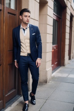 (1man:1.4),(male:1.2),(full body:1.2),(Collared shirt and blazer and suit trousers:1.4),<lora:Male_3:0.8>,
