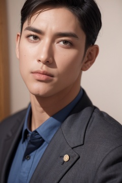 (1man:1.5),(male:1.5),(close up),short hair,suit,<lora:Male_2:0.8>,