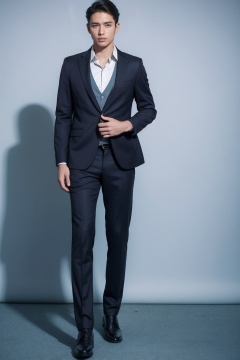 (1man:1.4),(male:1.2),(full body:1.2),(Collared shirt and blazer and suit trousers:1.4),<lora:Male_2:0.8>,