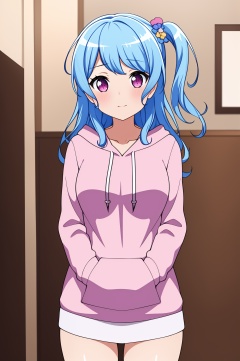 masterpiece,best quality,<lora:HUAYIN11:0.35>,hair one side up,medium breasts,hoodie