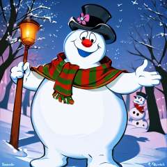 <lora:Genzoman_Style_Dim64:0.6>,((masterpiece,best quality)), absurdres, <lora:Frosty_the_Snowman:0.8>, Frosty_the_Snowman, snowman, no humans,  solo, smiling, looking at viewer, cowboy shot,