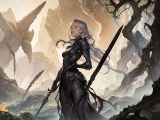 (masterpiece, best quality,top quality),(cowboy_shot:1.1),(lol_style),game cg,petals,1girl,breasts,tree,solo,silver hair,fantasy dress,white,weapon,long_hair,water,holding_weapon,looking_at_viewer,holding,hills,scenery,background,outdoors,top light,Tindal effect,particle effects,illuminatio,dynamic angle,depth of field,impressionist art,real light and shadow,