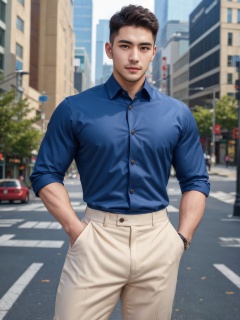 masterpiece,1 Man,Look at me,Handsome,Lovely,textured skin,super detail,best quality,adapted_uniform,Bustling city,,
