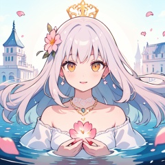 noble,queen,the queen of flowers,rococo,Luxury,sky,court,river,focus on face,upper body,Gorgeous and exaggerated palace wigs,18th century French court,Anton Vanette,Mary IX,Silver pink hair,countless flowers,feather fans,luxurious,light pink hair,silver hair,(silver hair),light pink hair,golden eyes,(golden eyes),Proud,arrogant,ignorant and fearless,Exaggerated and naive smile,closed mouth,partied lips,<lora:standingFullBodyWithBackgroundStyle_v10Offset:1>,((ink)),(water color),bloom effect,detailed beautiful grassland with petal,flower,butterfly,necklace,smile,petal,(((surrounded by heavy floating petal flow))),beautiful detailed glow, detailed ice, beautiful detailed water, (magic circle:1.2), (floating palaces:1.3),, fcportrait, masterpiece, best quality,
