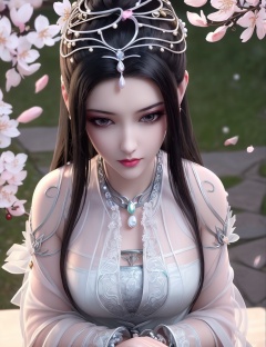 ultra realistic 8k cg, picture-perfect face, flawless, clean, masterpiece, professional artwork, famous artwork, cinematic lighting, cinematic bloom, perfect face, beautiful face, fantasy, dreamlike, unreal, science fiction,   lace, lace trim, lace-trimmed legwear,  (rich:1.4), prestige, luxury, jewelry, diamond, gold, pearl, gem, sapphire, ruby, emerald, intricate detail, delicate pattern, charming, alluring, seductive, erotic, enchanting, hair ornament, necklace, earrings, bracelet, armlet,halo((,1girl, pov,))  , ((((1girl, solo, ,cherry blossoms,outdoors, ))))<lora:DA_LinQingZhu:0.7>