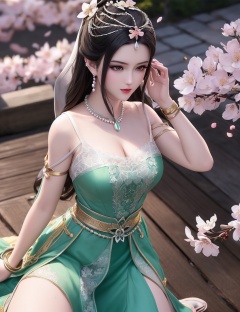 ultra realistic 8k cg, picture-perfect face, flawless, clean, masterpiece, professional artwork, famous artwork, cinematic lighting, cinematic bloom, perfect face, beautiful face, fantasy, dreamlike, unreal, science fiction,   lace, lace trim, lace-trimmed legwear,  (rich:1.4), prestige, luxury, jewelry, diamond, gold, pearl, gem, sapphire, ruby, emerald, intricate detail, delicate pattern, charming, alluring, seductive, erotic, enchanting, hair ornament, necklace, earrings, bracelet, armlet,halo((,1girl, pov,))  , ((((1girl, solo, ,cherry blossoms,outdoors, ))))<lora:DA_LinQingZhu:0.6>