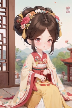 qgirl,  1girl, hair ornament, hair flower, hair bun, chinese_clothes, sitting_down, looking_at_viewer,<lora:EMS-225593-EMS:1.000000>