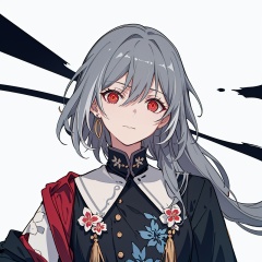 (masterpiece:1.3),(the best quality:1.2),(super fine illustrations:1.2),(Masterpiece),high quality,high detail,(white background:1.2),looking at viewer,(SOLO:1.4),outline,simplebackground,, hair between eyes,red eyes,long hair,very long hair,earrings,cross-laced footwear,boots,multicolored hair,tassel,wide sleeves,low-tied long hair,long sleeves,long skirt,jewelry,hair ornament,grey hair,floral print,black skirt,senti,grey_hair,hair_between_eyes,