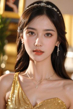 1girl,qianjin,(8k, RAW photo, best quality, masterpiece:1.3),(realistic,photo-realistic:1.37),(looking at viewer:1.331),soft light,extremely beautiful face,Random hairstyle,Random expression,big eyes,an extremely delicate and beautiful girl,depth of field,blurry background,blurry foreground,delicate,beautiful,beautiful face,beautiful eyes,beautiful girl,delicate face,delicate girl,8k wallpaper,(best quality:1.12),(detailed:1.12),(intricate:1.12),(ultra-detailed:1.12),(highres:1.12),hyper detailed,ultra-detailed,high resolution illustration,colorful,8k wallpaper,highres,Cinematic light,ray tracing,(8k, RAW photo, best quality, masterpiece, ultra highres, ultra detailed:1.2),(realistic, photo-realistic:),formal_dress,red dress,cowboy_shot,jewelry,earrings,necklace,dress,long hair,breasts,cleavage,blurry,bare shoulders,parted lips,black dress,red lips,black hair,pearl necklace,looking at viewer,blurry background,strapless dress,strapless,lips,tiara,medium breasts,upper body,lipstick,indoors,makeup,depth of field,gloves,realistic,<lora:Kolak_“千金”复古氛围感人像:0.8>,gem,