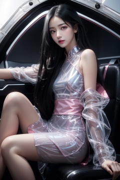 masterpiece,  best quality,  Best picture quality,  best quality,  official art,  (extremely detailed CG unity 8k wallpaper:1.2),  (ultra high resolution:1.1),  (photo:1.3),  Cinematic lighting,  (fidelity :1.3),  real,  (masterpiece:1.0),  (best quality:1.0),  (film grain:1.2),  professional lighting,  radiosity,  golden proportions,  wide shoulders,  (Kpop idol:1.1),  detailed beautiflul skin,  detailed skin-texture,  looking at viewer,  (perfect hands), (detailed beautiflul face:1.2),  PureErosFace_v1,  solo,  lily_\(flower\),  Sci-fi setting,  starship cabin,  space flight deck1girl\((bishoujo),  (pure black hair:1.5),  (black eyes:1.5),  (small breast:1.6),  (straight_hair:1.4),  long_hair,  (very_long_hair:1.5),  anime_hair,  slim,  (hairless:1.2),  sharp_eyelid,  eyeliner,  eyelashes,  eyeshadow,  mature female,  (perfect detailed face),  (pink lipgloss:1.3),  long legs\), black Ultra-thin transparent,  (silver Ultra-thin transparent mech:1.3),  (all black color scheme:1.4),  (conservative ancient style hanfu:1.2),  (mecha),  smile,  The clothes have a lot of thin glowing threads,  sense of the future, sitting,  (sitting_down:1.5),  side,  ,<lora:EMS-24694-EMS:0.400000>,<lora:EMS-2774-EMS:0.400000>,<lora:EMS-7720-EMS:-0.800000>