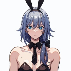 (masterpiece:1.3),(the best quality:1.2),(super fine illustrations:1.2),(Masterpiece),high quality,high detail,(white background:1.2),looking at viewer,(SOLO:1.4),outline,simplebackground,, blue eyes,hair between eyes,grey hair,hairband,black footwear,high heels,collar,hair bow,collarbone,black bowtie,black bow,bare shoulders bare shoulders,arm strap,choker,wrist cuffs,rabbit tail,rabbit ears,low ponytail,leotard,tail,playboy bunny,pantyhose,long hair,animal ears,