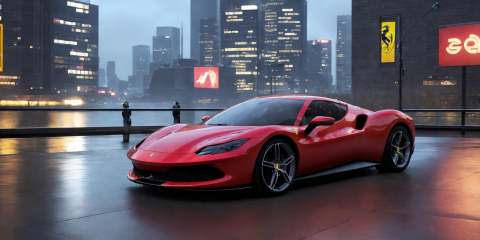 Ferrari,Ferrari 296,Ferrari car logos,masterpiece, highly detailed photorealistic 8k raw photo,Rainy night, night,bright tones,real light and shadow,best cinematic quality, volumetric lighting and shadows, the front of the car has a Ferrari logo, ftkr, cutting-edge design, showcasing sleek lines, advanced features, innovation. Place it in a setting that complements its futuristic nature, whether it's a futuristic cityscape, a high-tech laboratory, or an environment of your choice, but one that truly emphasizes the car's futuristic qualities,1girl driving car, sprktt,cutting-edge design, showcasing sleek lines, advanced features, innovation, futuristic cityscape, high-tech laboratory, futuristic cityscape background, Full shot, shiny and reflective bodywork ,8k <lora:Ferrari 296(法拉利296):0.7>