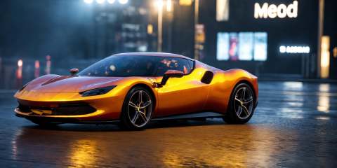 Ferrari,Ferrari 296,Ferrari car logos,masterpiece, highly detailed photorealistic 8k raw photo,Rainy night, night,bright tones,real light and shadow,best cinematic quality, volumetric lighting and shadows, the front of the car has a Ferrari logo,1girl,1girl driving car, sprktt,cutting-edge design, showcasing sleek lines, advanced features, innovation, futuristic cityscape, high-tech laboratory, futuristic cityscape background, Full shot, shiny and reflective bodywork ,8k <lora:Ferrari 296(法拉利296):0.9>