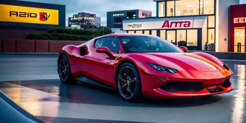 Ferrari 296,Ferrari car logos,a woman,masterpiece, highly detailed photorealistic 8k raw photo,Rainy night, night,bright tones,real light and shadow,best cinematic quality, volumetric lighting and shadows, the front of the car has a Ferrari logo,1girl,1girl driving car, sprktt,cutting-edge design, showcasing sleek lines, advanced features, innovation, futuristic cityscape, high-tech laboratory, futuristic cityscape background, Full shot, shiny and reflective bodywork ,8k <lora:Ferrari 296(法拉利296):0.7> <lora:supercargirl2:0.8>