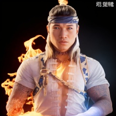(masterpiece:1.3), (the best quality:1.2), (super fine illustrations:1.2), (Masterpiece), high quality, high detail, ((white background:1.2)), looking at viewer, (SOLO:1.4), outline, , simple background, chinese clothes, muscular, ankle wrap, white shirt, bandaged leg, tattoo, armor, choker, logo, vest, jacket, earrings, manly, pants, necklace, belt, jewelry, wrist wrap, fire, flame, bandaged hand, arm wrap, bandaged arm, long hair, headband, fu hua