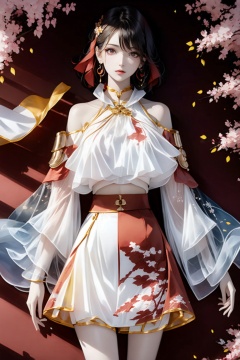 Masterpiece,Ultimate,A girl,silk,cocoon,spider web,Solo,Complex Details,Color Differences,Realistic,Moderate Breath,Off Shoulder,Eightfold Goddess,Hair Above One Eye,Earrings,Sharp Eyes,Perfect Fit,Choker,Dim Lights,cocoon,transparent,jiBeauty,yifu,wangyushan,upper_body,chinese_clothes,background_sky,no hair on eye,looking_at_viewer,facing_viewer,front-view,do not tilt,do not bias,no leap.