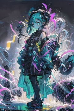 A girl,a female anime character is wearing futuristic and shoes, in the style of psychedelic neon, nintencore, skottie young, light pink and light black, kidcore, dark white and dark cyan, colorful chaos, sifang, BJ_Violent_graffiti, CJ-BWD, pop style