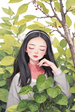 Overall, this image is a beautiful and serene portrait of a young woman in a garden setting. The combination of natural elements, such as the plants and the garden setting, creates a peaceful and tranquil atmosphere. The subject's graceful pose and peaceful expression add a sense of tranquility and inner peace to the image.