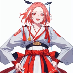 (masterpiece:1.3), (the best quality:1.2), (super fine illustrations:1.2), (Masterpiece), high quality, high detail,((white background:1.2)), looking at viewer, (SOLO:1.4),outline,,simple background, feather_hair_ornament, open_mouth, pink_hair, red streaked hair, hair_ornament, red_eyes, centre parting bangs, feathers, feathered_wings, smile, gradient hair, yu fuhua