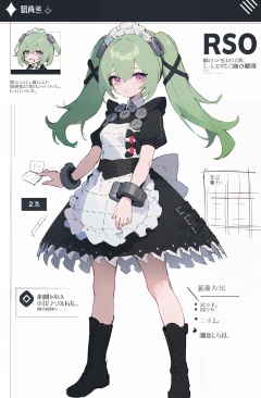 multiple views, pencil sketch, (sketch:1.25), (little girl,small breasts,), ((no shoes)), shy, best quality, graphite \\(medium\\), ske, gradient, rainbow, note, Line draft, highres, absurdres, (ultra-detailed:1.1), (illustration:1.1), (infographic:1.2), pajamas, (all clothes configuration:1.15), (solo), perfectly drawn hands, standing, cohesive background, paper, action, (character design:1.1), <lora:corin-v100-000028:0.8:lbw=OUTALL>, corin, 1girl, twintails, boots, apron, long hair, maid headdress, green hair,