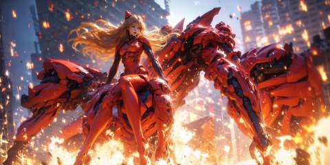 Epic CG masterpiece,Asuka Langley Soryu,hdr,dtm,full ha,Sitting on mecha device,8K,ultra detailed graphic tension,dynamic poses,stunning colors,3D rendering,surrealism,cinematic lighting effects,realism,00 renderer,super realistic,glowing,magic,full_body photos,super vista,super wide Angle,HD,<lora:绪儿-明日香_v1.0:0.8>,<lora:MFlame:0.5>,fighting stance,