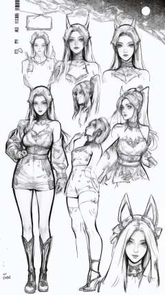 character sheet,ink,comic,<lora:animeLineartMangaLike_v30MangaLike:0.65>,monochrome,