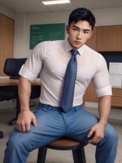 masterpiece,1 Man,Look at me,Short hair,Handsome,Beard,shirt,Tie,white pants,salaryman,Office,Indoor,Sit down,Coffee,textured skin,super detail,best quality,,