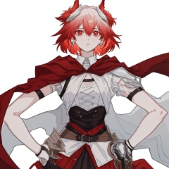 (masterpiece:1.3), (the best quality:1.2), (super fine illustrations:1.2), (Masterpiece), high quality, high detail,((white background:1.2)), looking at viewer, (SOLO:1.4),outline,,simple background,red wings, armored boots, gradient hair, shoulder armor, breastplate, corset, hooded cloak, belt, tail, bird, thighhighs, red skirt, red cape, gauntlets, embers, boots, armor,short hair,hair ornament,red eyes,bangs,hair between eyes,multicolored hair,white hair,jewelry,red hair,long sleeves,gem,streaked hair, short hair,gradient hair,feathers, animal ears, floating hair, phoenix, fiery hair, fiery wings, flaming eye,1girl, breasts, brown eyes, cape, earrings, fire, jewelry, shirt, short hair, skirt,