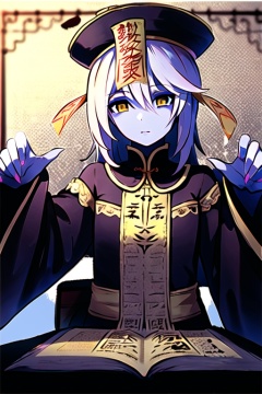 1girl,wsjs,jiangshi,chinese zombie,yellow paper,spell,