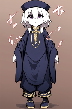 1girl,wsjs,jiangshi,chinese zombie,empty eyes,spell,jiangshi costume,look at different places with both eyes,pale skin,the whole body,full body,