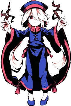 1girl,wsjs,jiangshi,chinese zombie,empty eyes,ofuda,spell,jiangshi costume,look at different places with both eyes,pale skin,the whole body,full body,simple background,charge,
